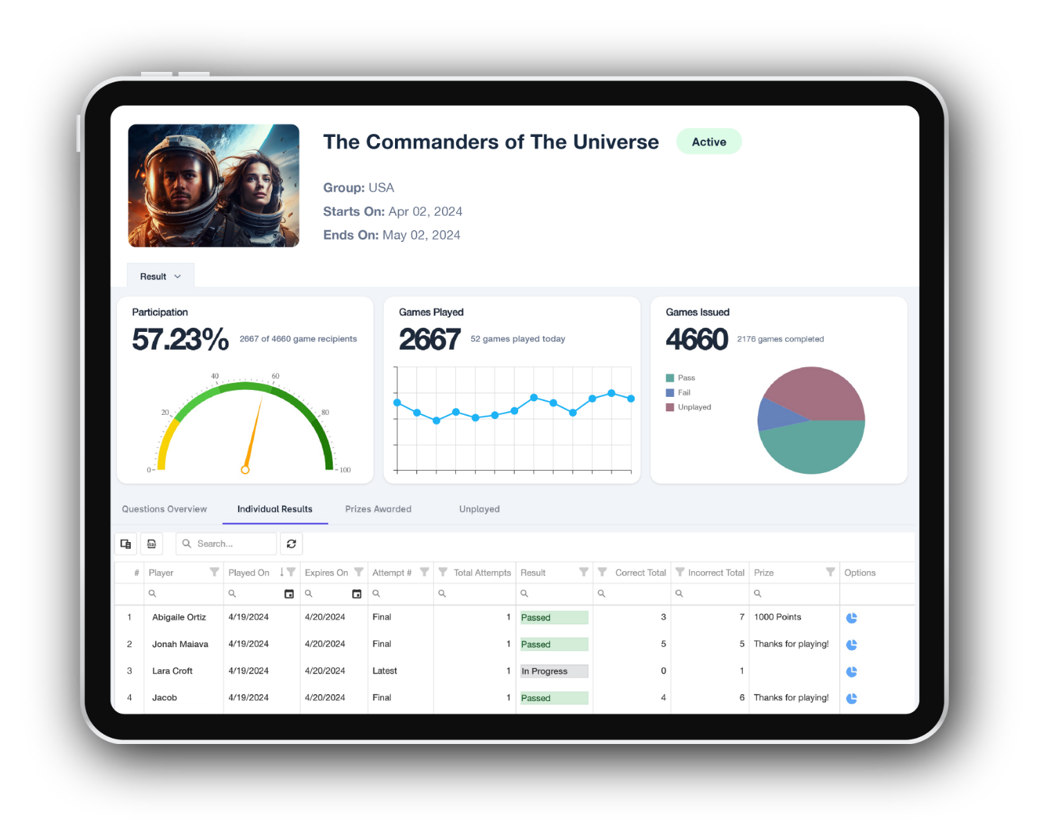 The Commanders of The Universe Mission is fully customizable to your content and objectives, with prizes and odds to fit your budget.