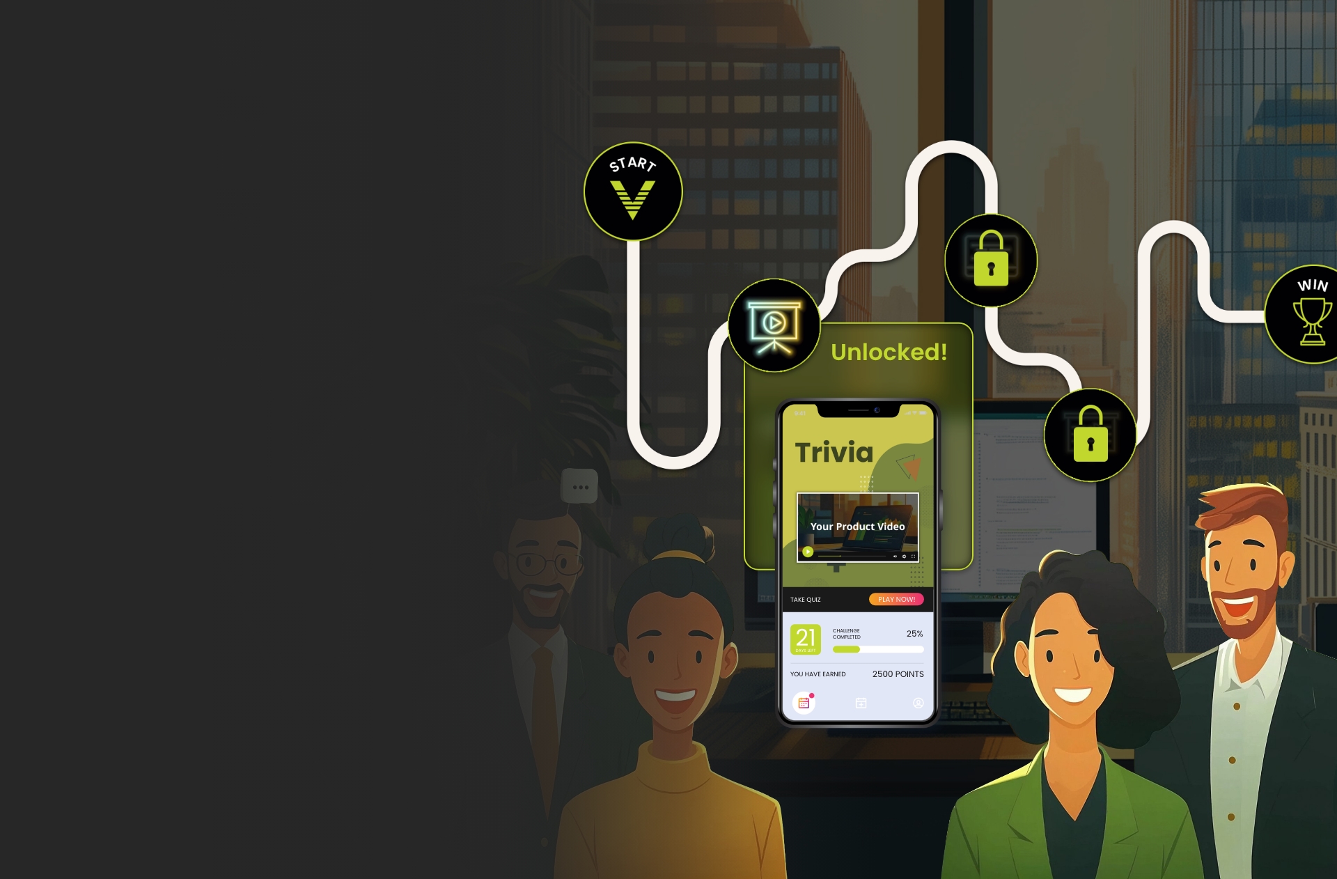 Ideal for Learn & Earn, New Product Launch, Milestone attainment, Sales Kick-Off, Onboarding new reps., etc.