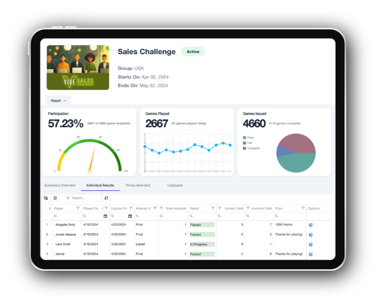 The Sales Challenge is fully customizable to your content and objectives, with prizes and odds to fit your budget.